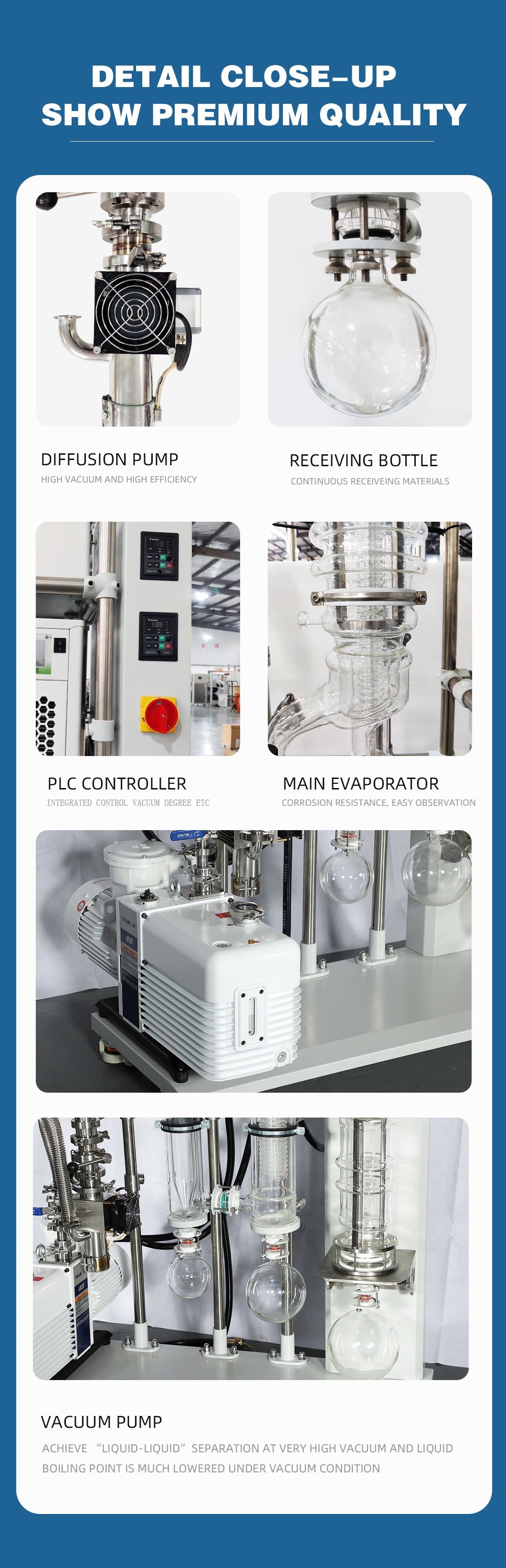 Lab1st multi-stage stainless steel wiped fim molecular distillation units have higher efficiency compared to single ones. For example, the first stage can be used to collect terpenes and the second stage makes distillation. You don't need to run for second time. Furthermore, you can use both stages to make distillation for higher purity as well based on your needs.
